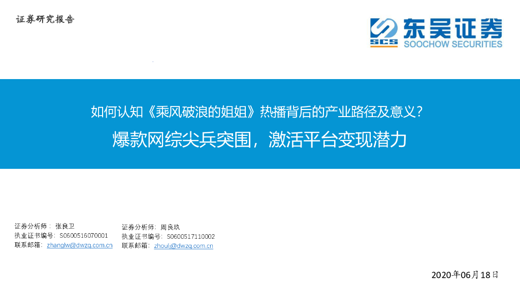 东吴证券:传媒-如何认知《乘风破浪的姐姐》 热播背后的产业路径及意义?爆款网综尖兵突围,激活平台变现潜力.pdf