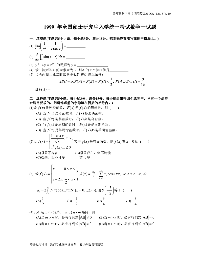 1999考研数一真题及解析.pdf