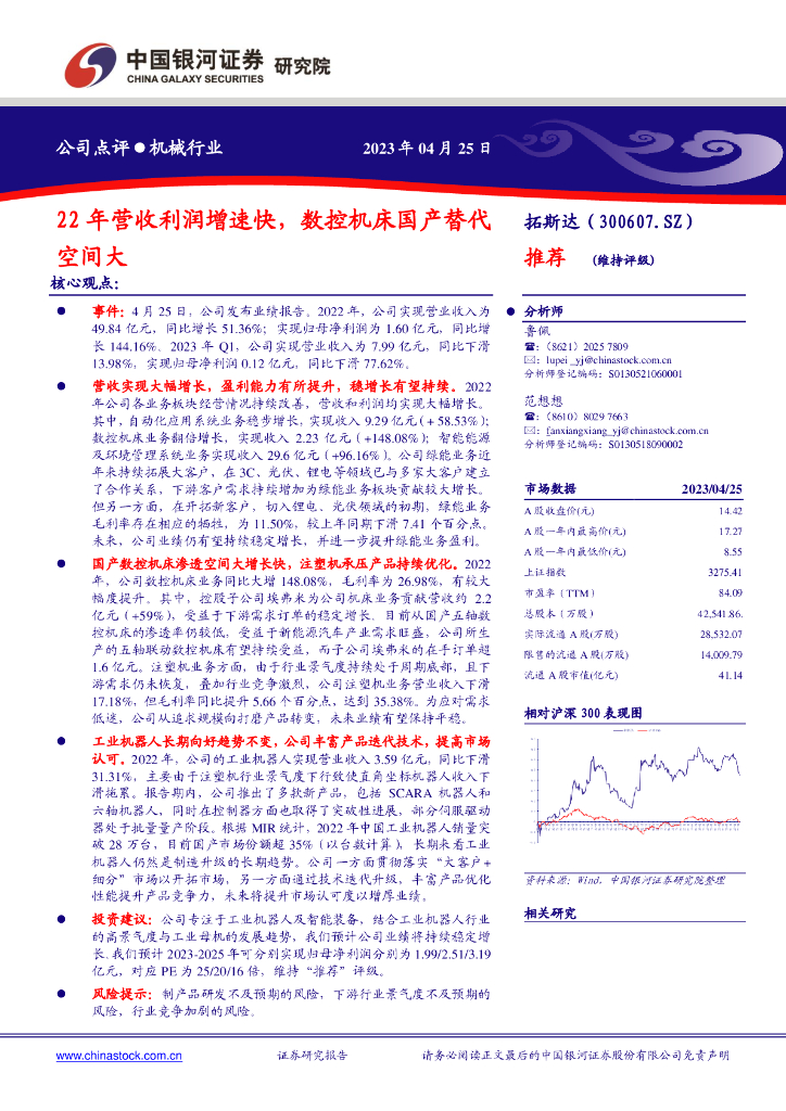 中国银河:拓斯达(300607)-22年营收利润增速快,数控机床国产替代空间大.pdf