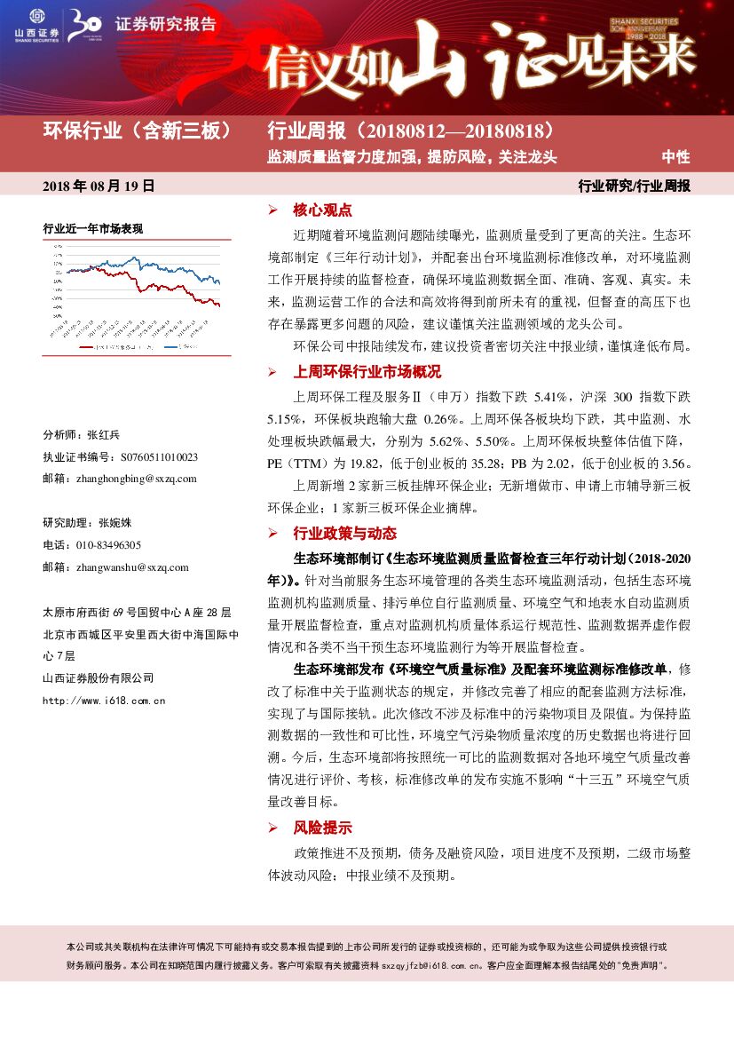 山西证券:环保行业周报:监测质量监督力度加强,提防风险,关注龙头.pdf