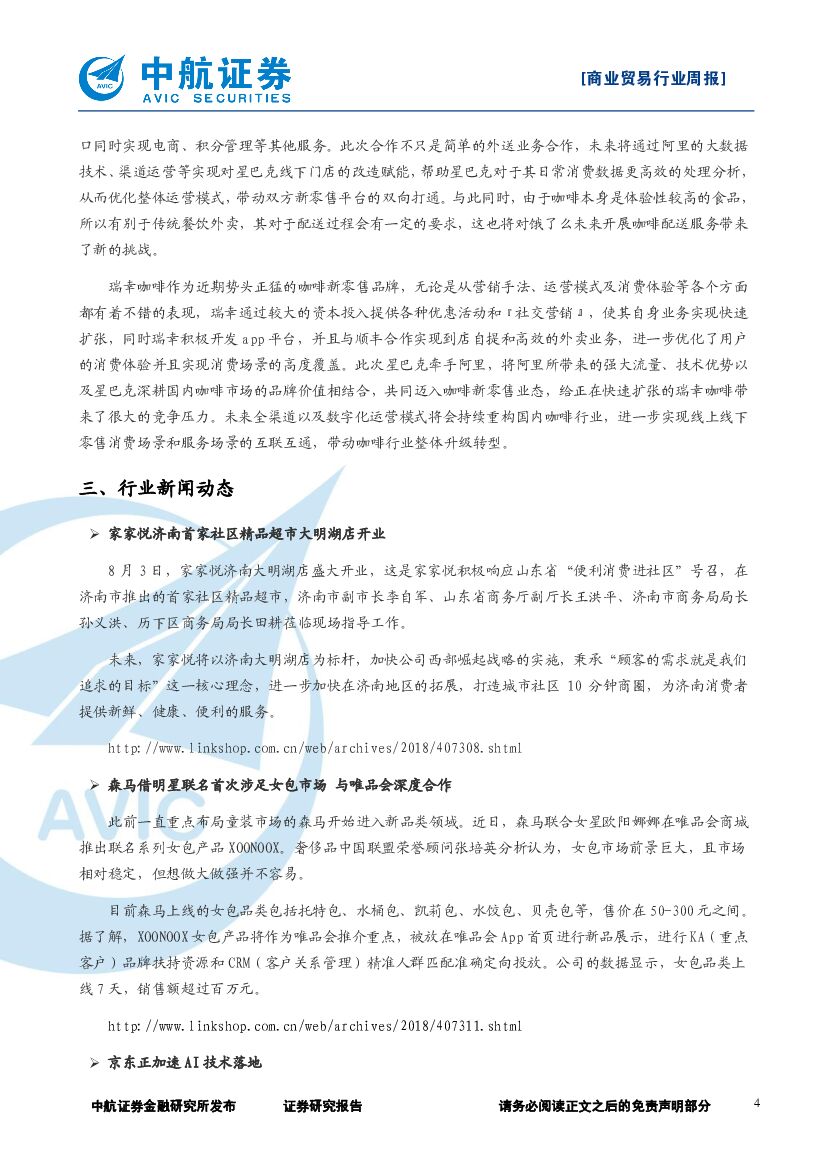 中航证券:商业贸易行业周报:苏宁大润发携手带动消费场景持续优化,新零售引领咖啡行业新变革.pdf