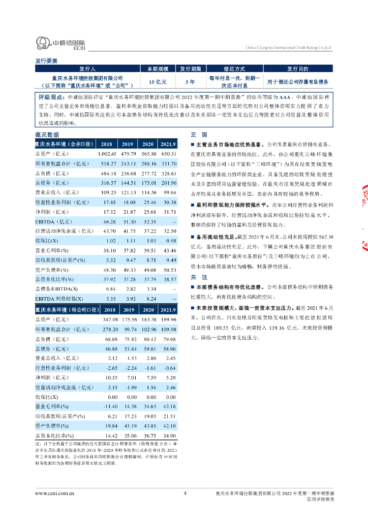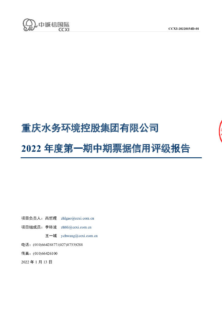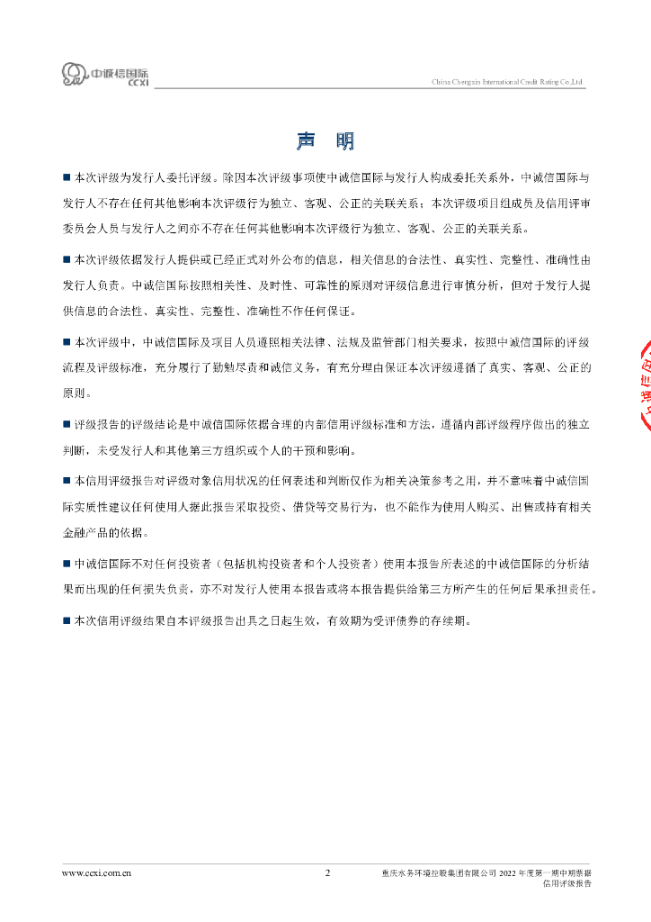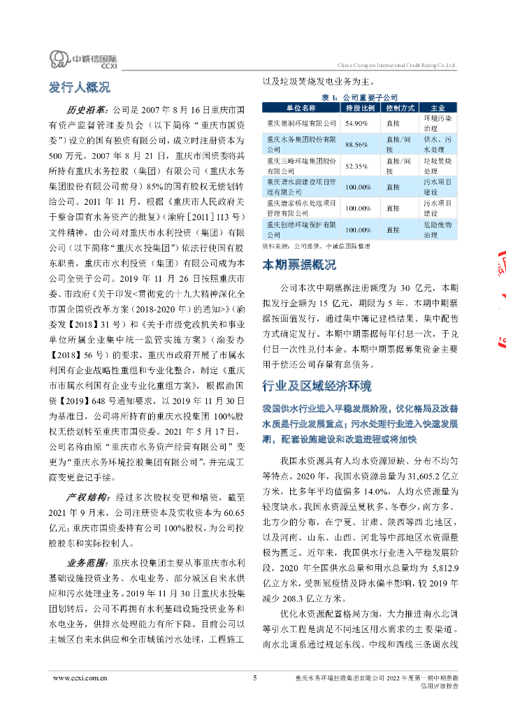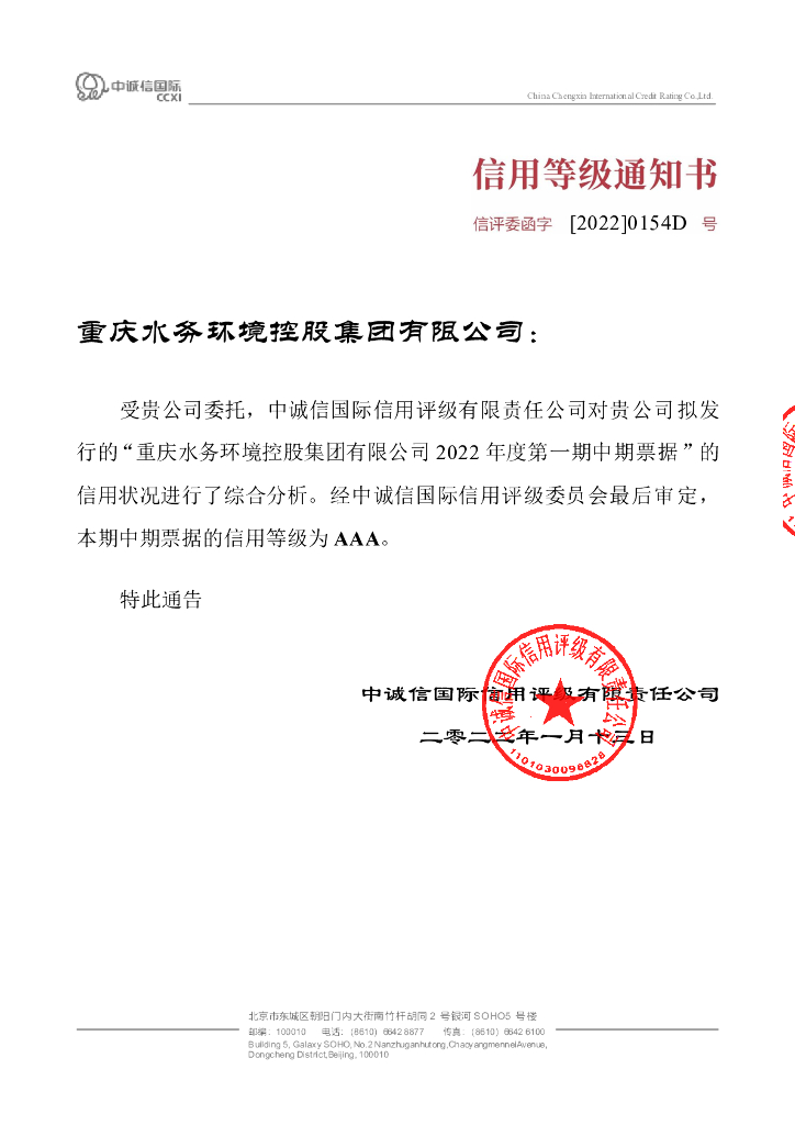 中诚信:重庆水务环境控股集团有限公司2022年度第一期中期票据债项信用评级报告.pdf