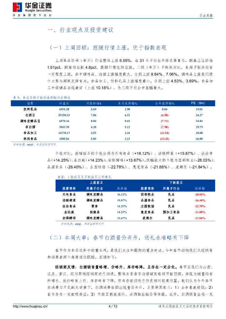 华金证券:食品饮料行业周报:春节:白酒量价齐升,库存高位略降.pdf