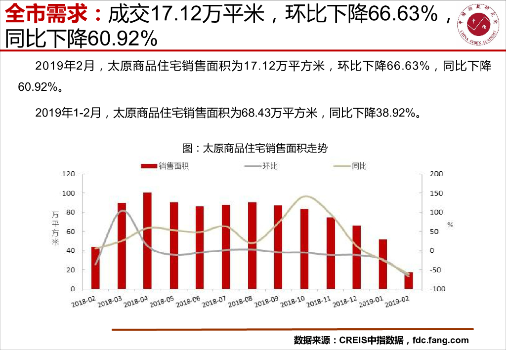 中国指数研究院:太原房地产市场快报(2019年2月).pdf