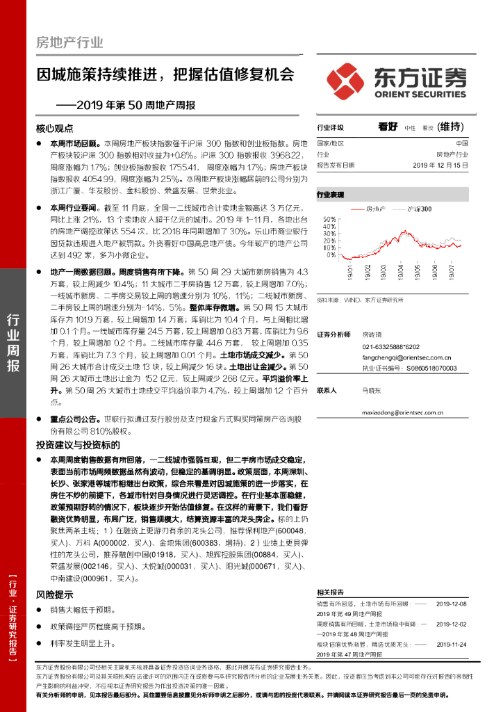 东方证券:房地产行业2019年第50周地产周报:因城施策持续推进,把握估值修复机会.pdf