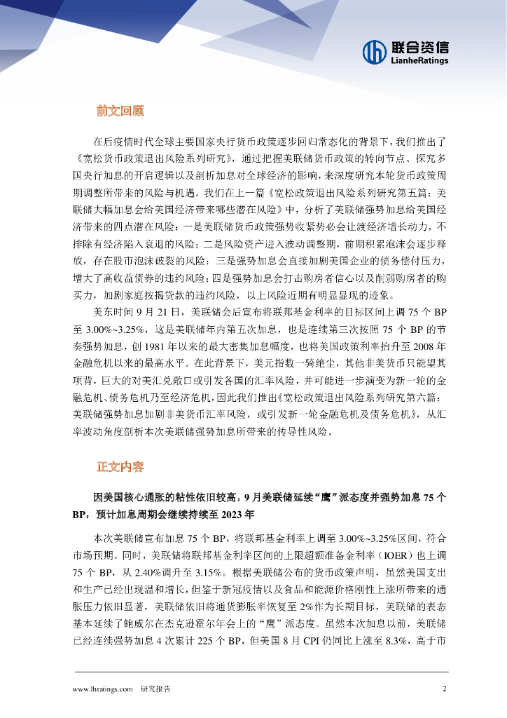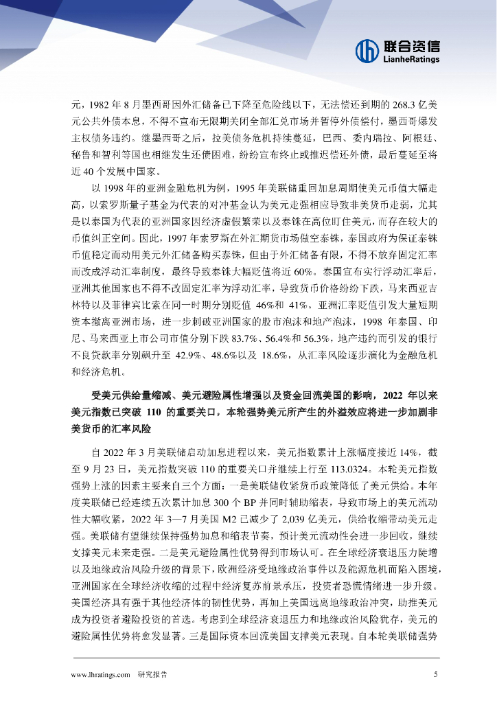 联合资信:宽松政策退出风险系列研究第六篇-美联储强势加息加剧非美货币汇率风险,或引发新一轮金融危机及债务危机.pdf