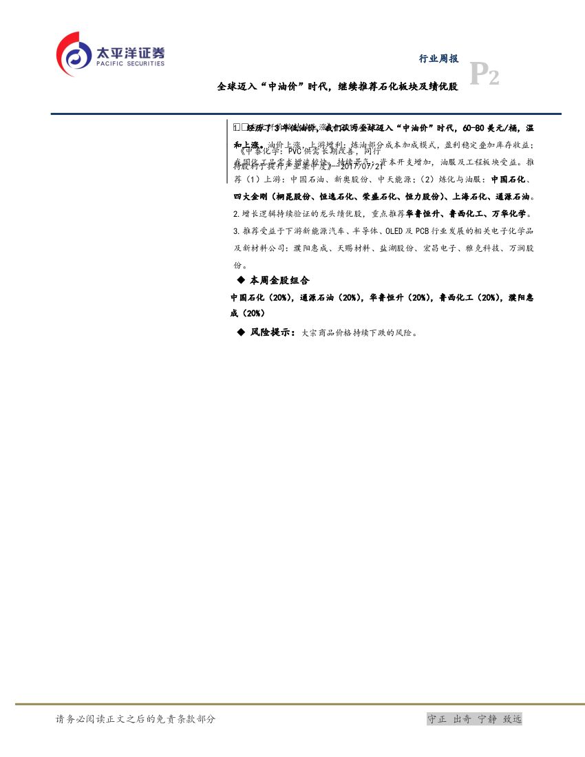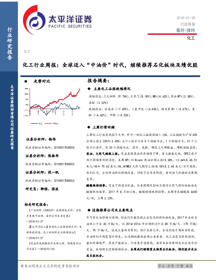 太平洋证券:化工行业周报:全球迈入“中油价”时代,继续推荐石化板块及绩优股.pdf