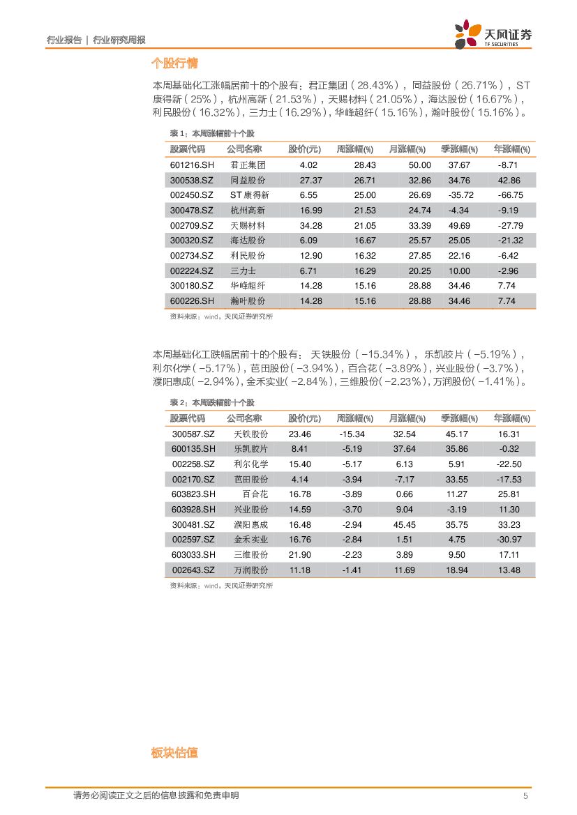 天风证券:化工行业周报:MDI和VE价格上涨,后续有望继续上行.pdf
