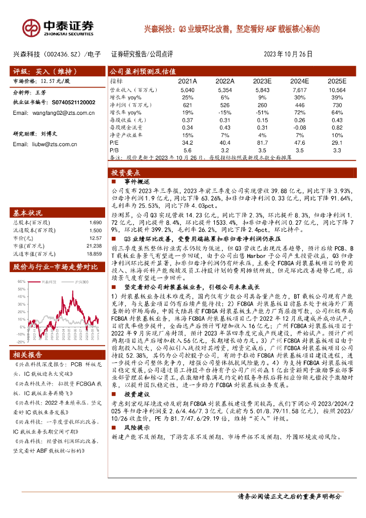 中泰证券:兴森科技(002436)-Q3业绩环比改善,坚定看好ABF载板核心标的.pdf