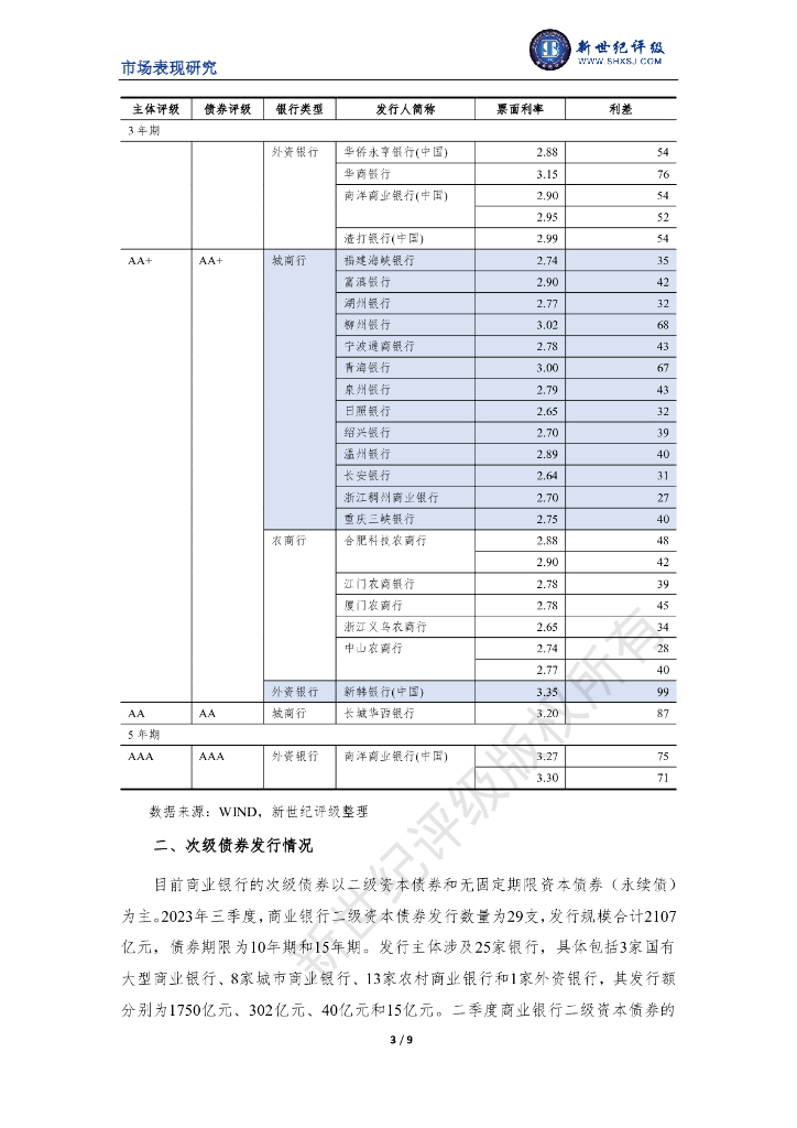 新世纪评级:商业银行2023年第三季度市场表现分析报告.pdf
