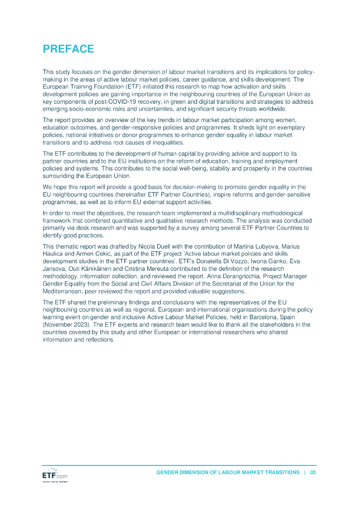 欧洲培训基金会ETF:2024年性别视角下的劳动市场转型及其对积极劳动市场政策、职业指导和技能发展政策制定的影响研究报告(英文版).pdf