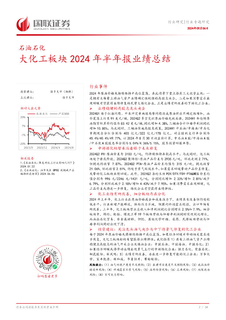 国联证券:石油石化行业专题研究:大化工板块2024年半年报业绩总结.pdf