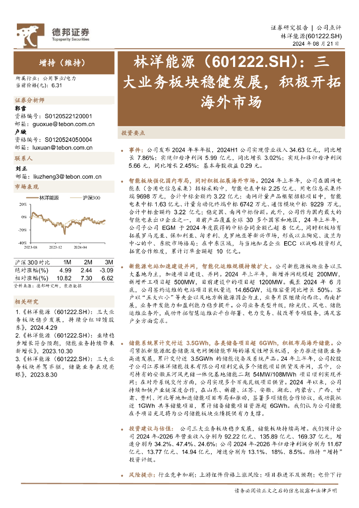 德邦证券:林洋能源(601222)-三大业务板块稳健发展,积极开拓海外市场.pdf