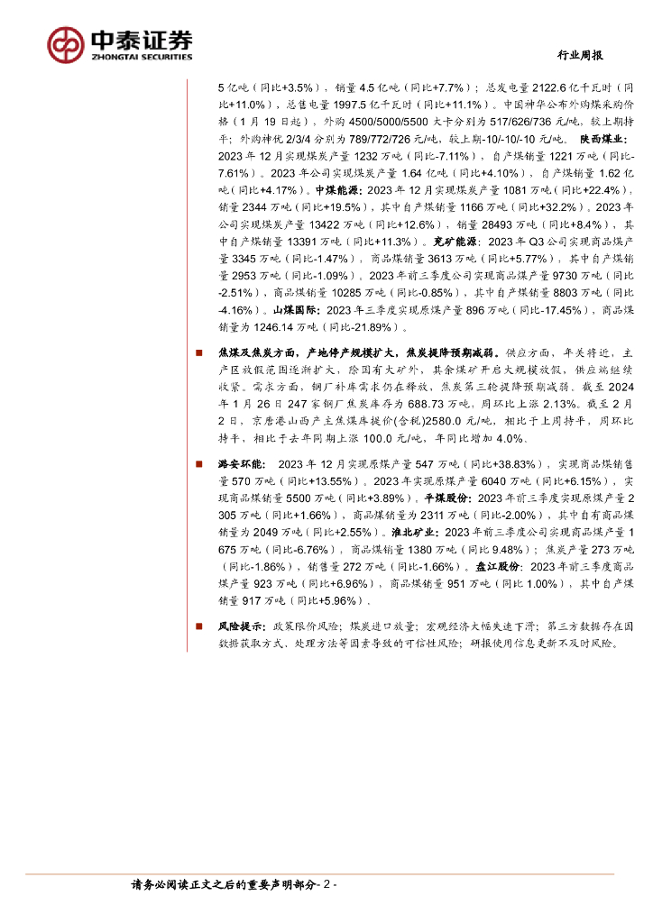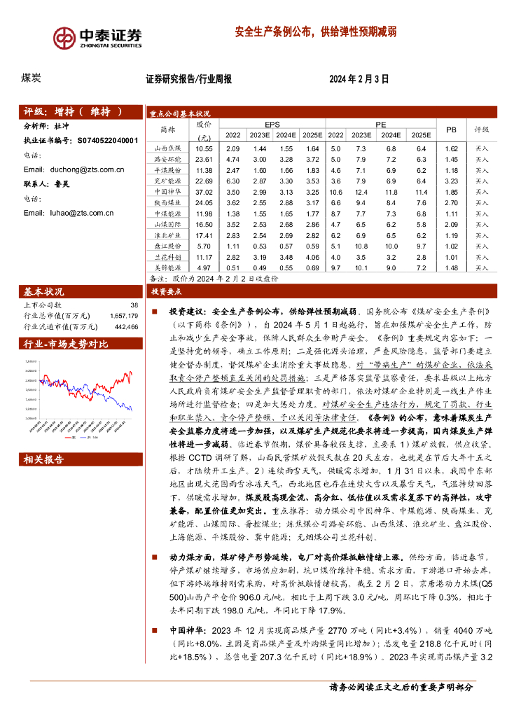 中泰证券:煤炭行业周报:安全生产条例公布,供给弹性预期减弱.pdf