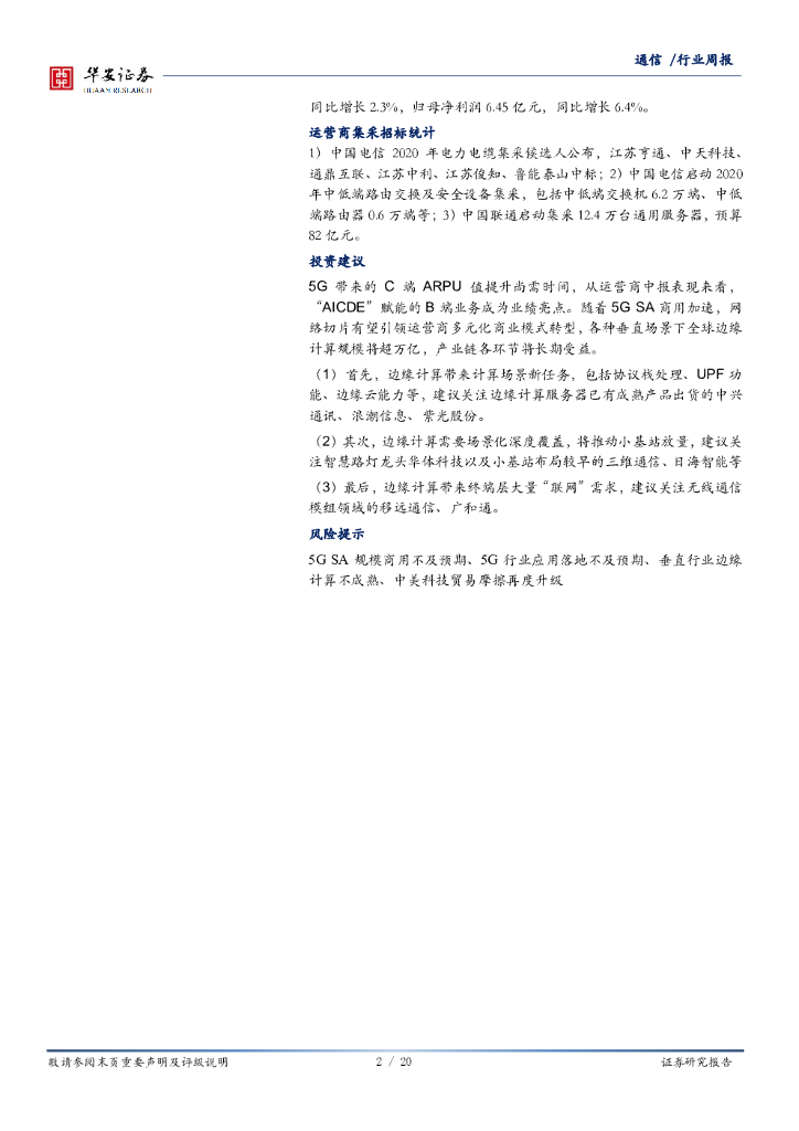 华安证券:通信行业周报:2B业务成为运营商业绩增长亮点,边缘计算大市场逐步打开.pdf
