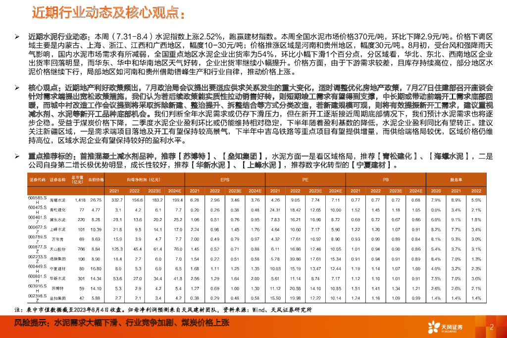 天风证券:水泥行业研究周报:继续推荐水泥链新开工品种.pdf