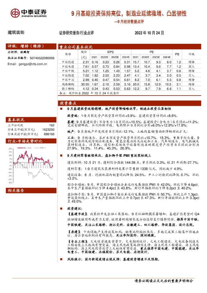 中泰证券:建筑装饰行业9月经济数据点评:9月基建投资保持高位,制造业延续稳增、凸显韧性.pdf