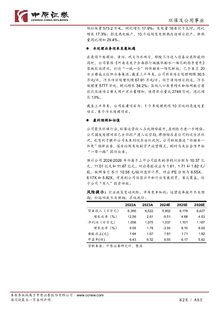 中原证券:城发环境(000885)-中报点评:环保运营收入占比提升,水处理业务迎来发展机遇.pdf