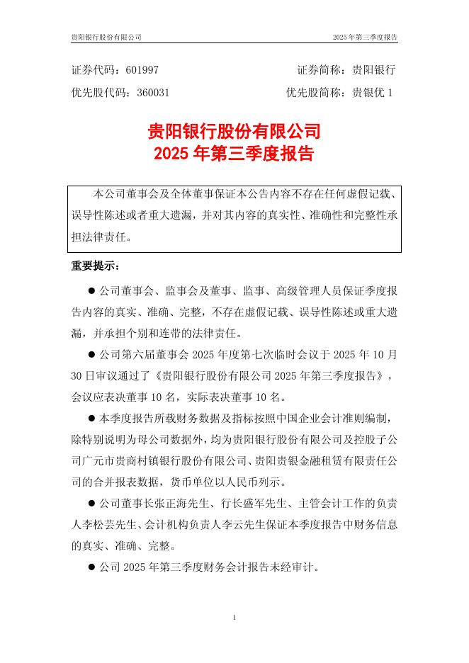 601997-贵阳银行:贵阳银行股份有限公司2025年第三季度报告.pdf