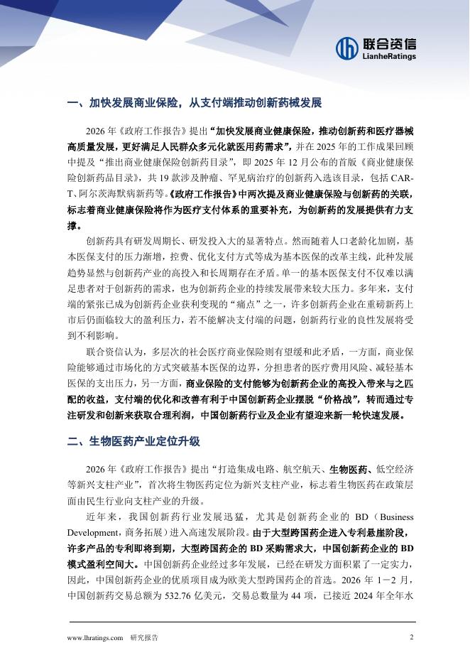 联合资信评估:2026年政府工作报告创新药相关内容解读:全链条支持创新药发展-260317.pdf