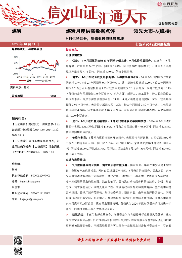 山西证券:煤炭月度供需数据点评:9月供给回升,制造业投资延续高增.pdf
