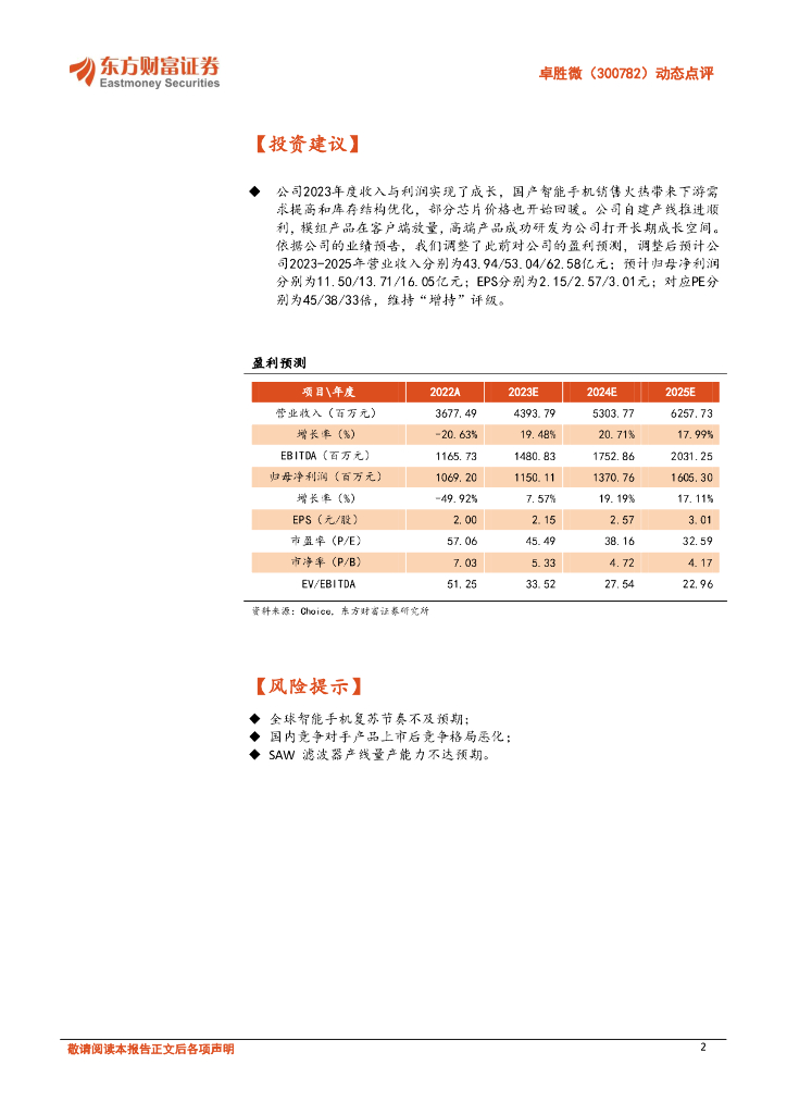 东方财富证券:卓胜微(300782)-动态点评:营收利润同比增长,射频模组放量打开成长空间.pdf