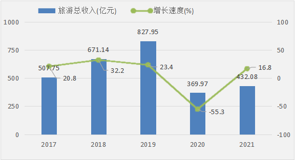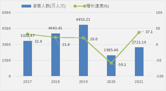 全年接待国内外游客2721.10万人次,比上年增长37.1%,其中国内游客2720.86万人次,增长37.6%。旅游综合总收入4320773万元,比上年增长16.8%,其中国内旅游收入4319749万元,增长17.3%。