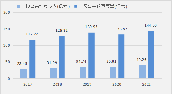 全年财政总收入634981万元,比上年增长10.0%。一般公共预算收入402561万元,增长12.4%。其中,税收收入256639万元,增长8.2%;非税收入145922万元,增长20.5%。全年一般公共预算支出1440298万元,比上年增长7.6%。其中,一般公共服务支出105135万元,下降13.8%;教育支出258413万元,增长1.7%;文化旅游体育与传媒支出22268万元,增长15.3%;卫生健康支出246341万元,增长39.5%;社会保障与就业支出232180万元,增长8.9%。