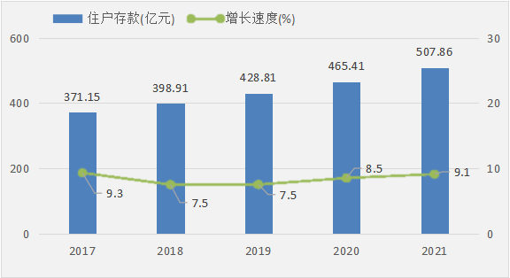 年末金融机构人民币各项存款余额7965177万元,比上年末增长6.2%。其中,住户存款5078562万元,增长9.1%;非金融企业存款978361万元,下降15.7%;机关团体存款1511196万元,增长9.3%。金融机构人民币各项贷款余额6076028万元,比上年末增长14.8%。其中,住户贷款3426872万元,增长14.8%;企(事)业单位贷款2649156万元,增长14.7%。