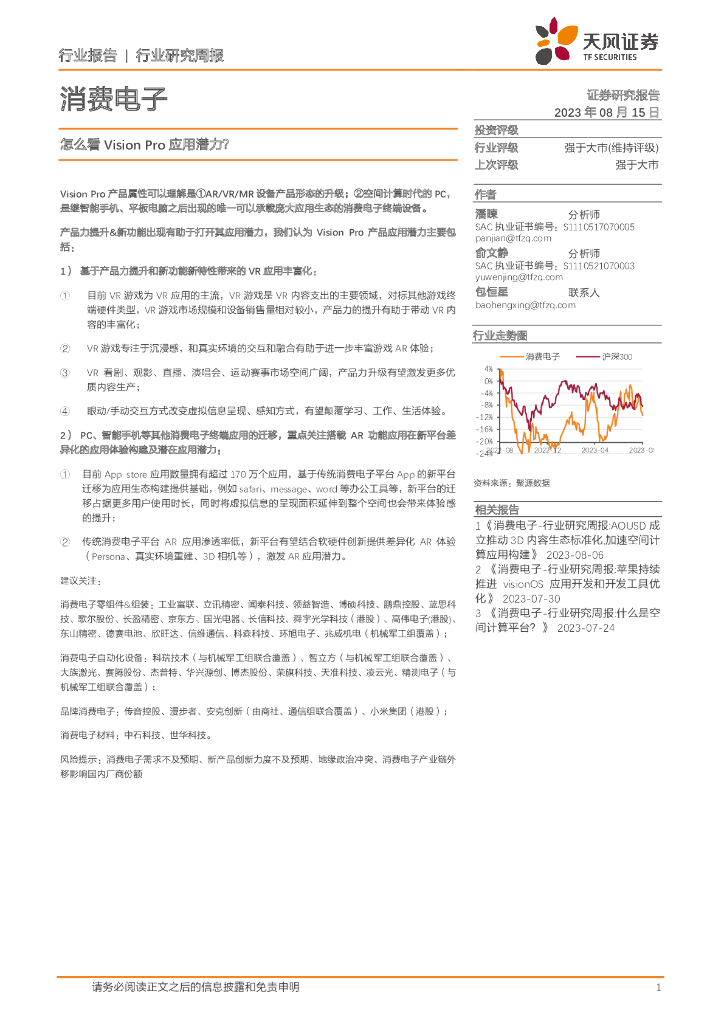 天风证券:消费电子行业研究周报:怎么看Vision Pro应用潜力?.pdf