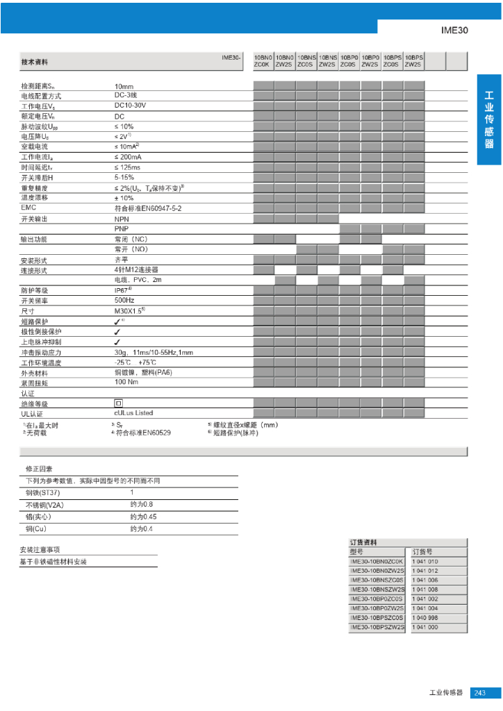 IME30电感式接近传感器选型手册.pdf