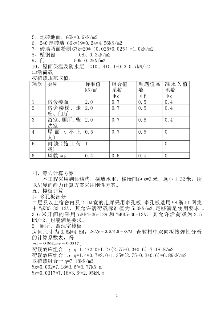 7305平米七层砖混学生公寓计算书(Word,21页).doc