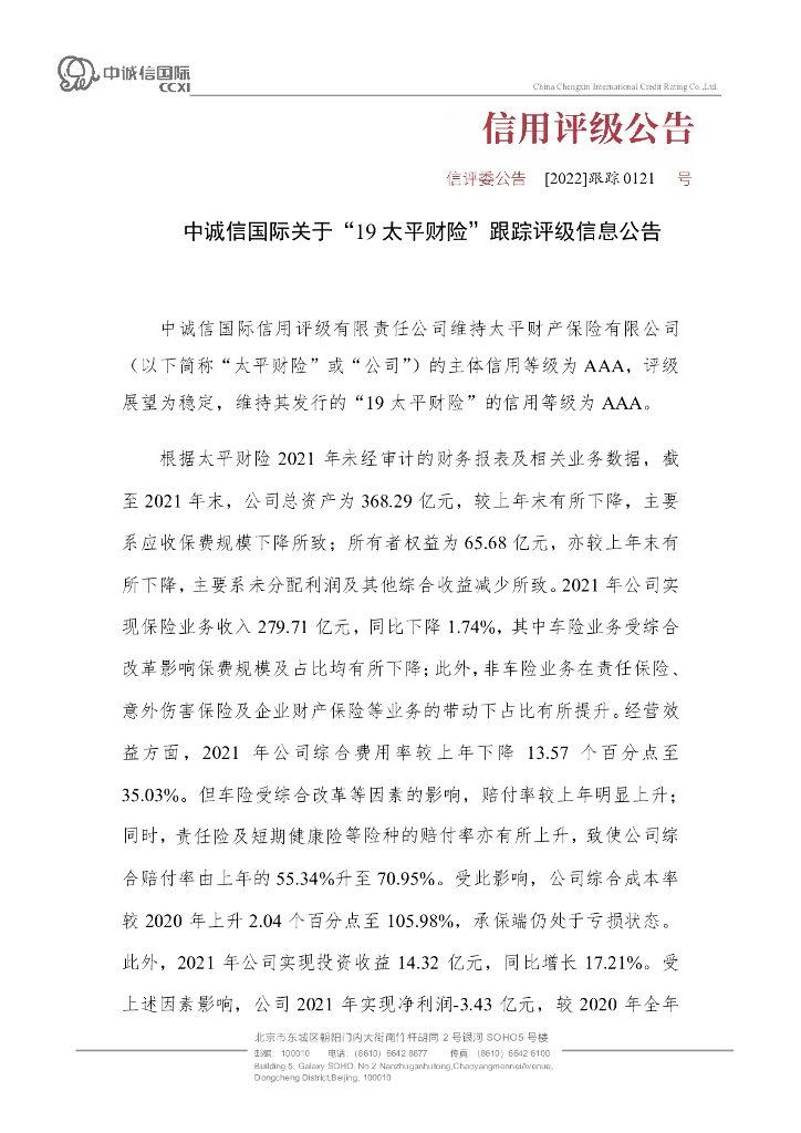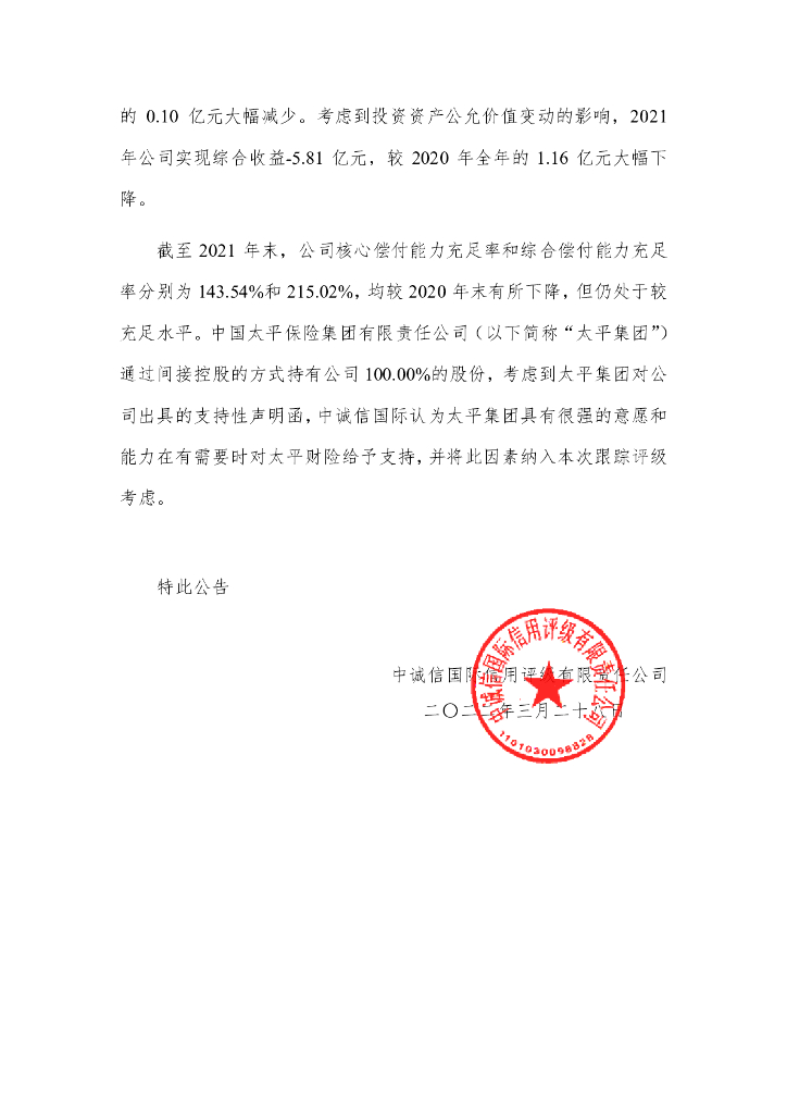 中诚信:中诚信国际关于“19太平财险”跟踪评级信息公告.pdf