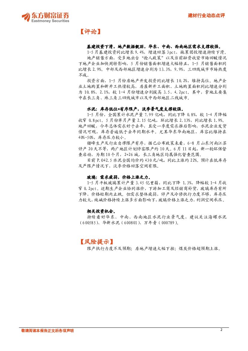 东方财富证券:建材行业动态点评:地产数据表现靓丽,水泥淡季景气度支撑较强.pdf