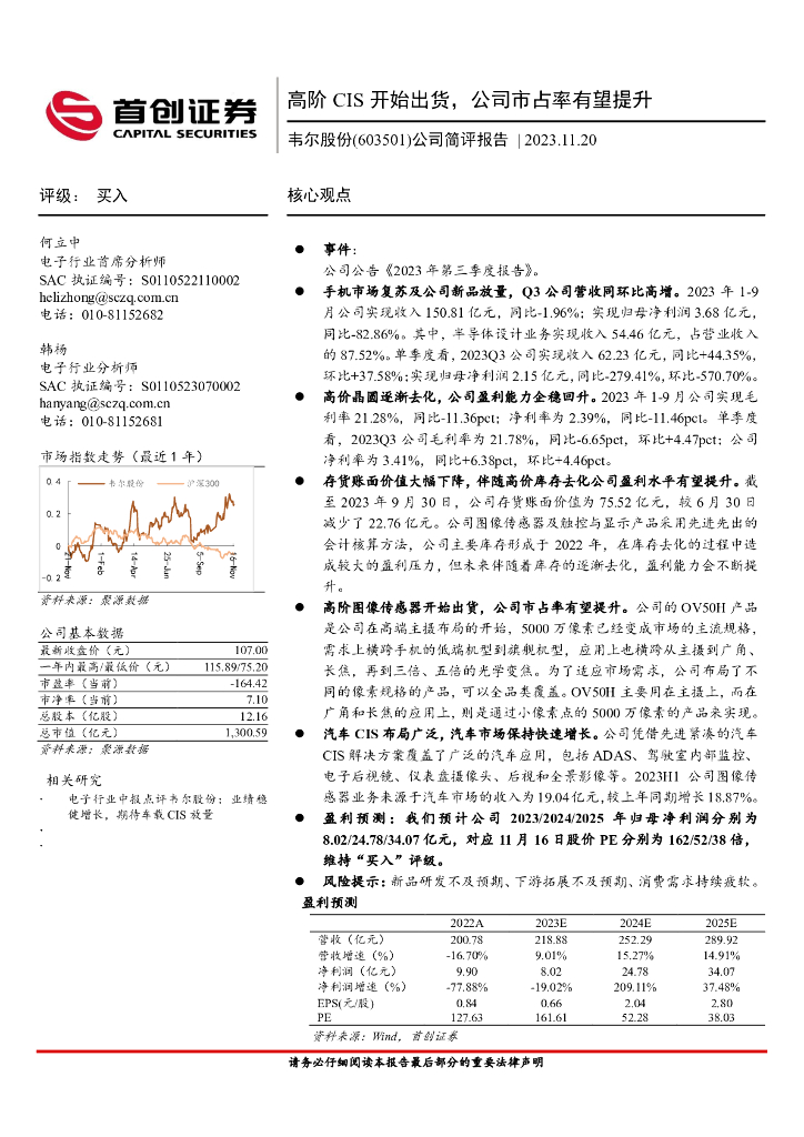 首创证券:韦尔股份(603501)-公司简评报告:高阶CIS开始出货,公司市占率有望提升.pdf