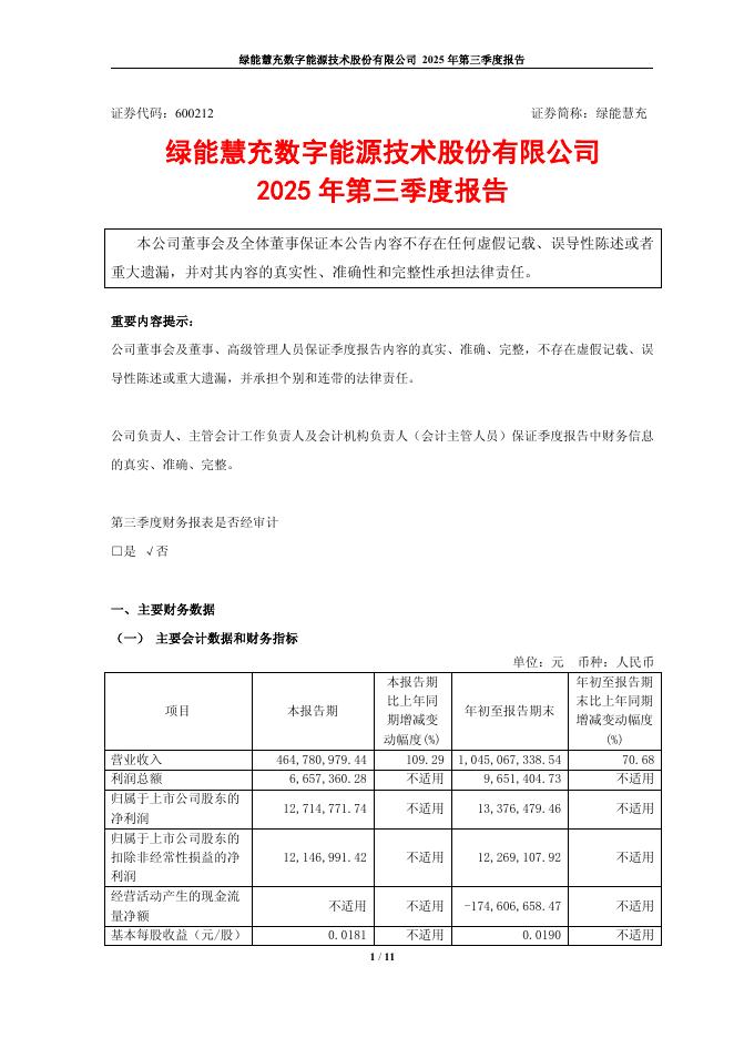 600212-绿能慧充:绿能慧充2025年第三季度报告.pdf