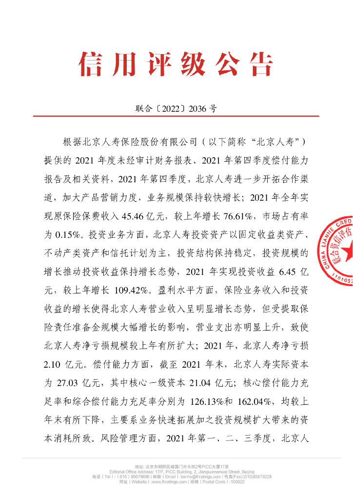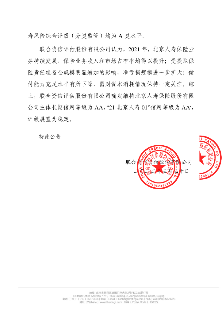 联合资信:北京人寿保险股份有限公司季度跟踪评级公告.pdf