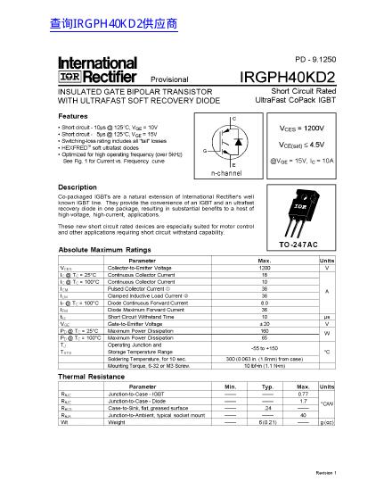 International IOR Rectifier IRGPH40KD2 数据手册.pdf