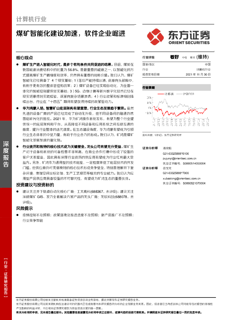 东方证券:计算机行业深度报告:煤矿智能化建设加速,软件企业崛进.pdf
