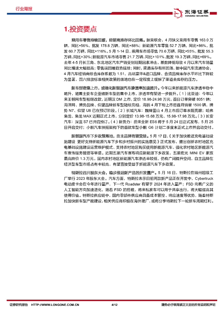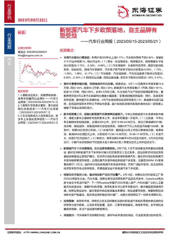 东海证券:汽车行业周报:新能源汽车下乡政策落地,自主品牌有望受益.pdf