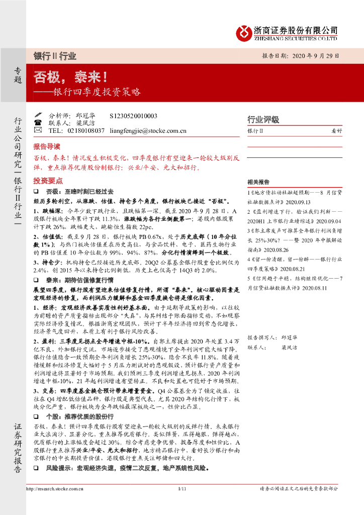 浙商证券:银行四季度投资策略:否极,泰来!.pdf