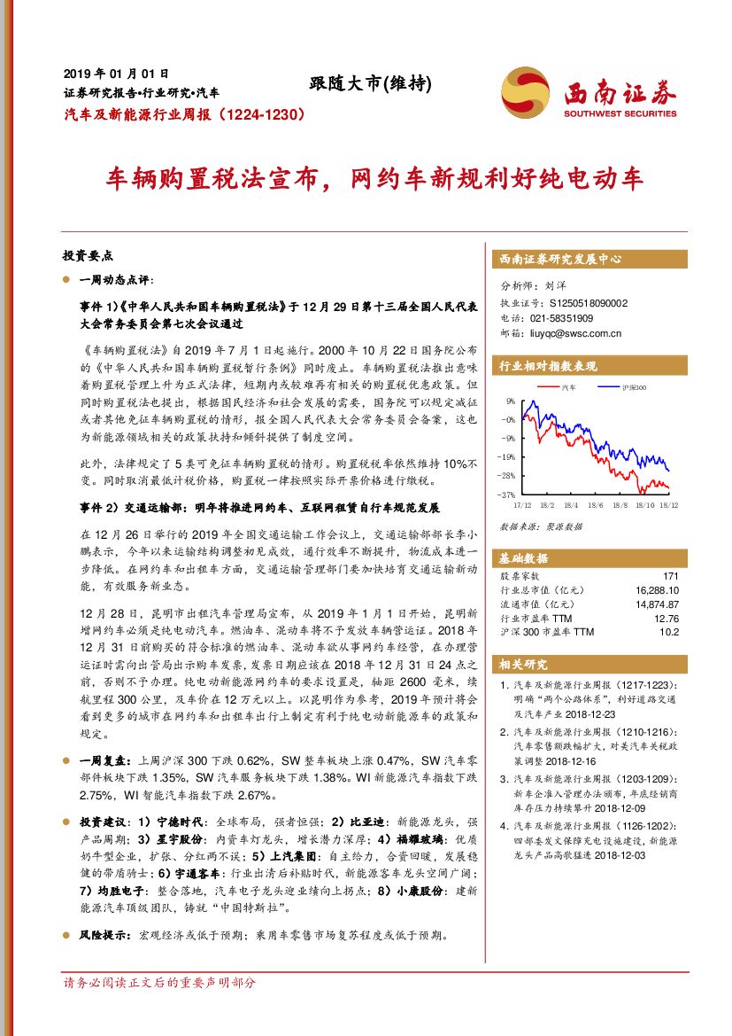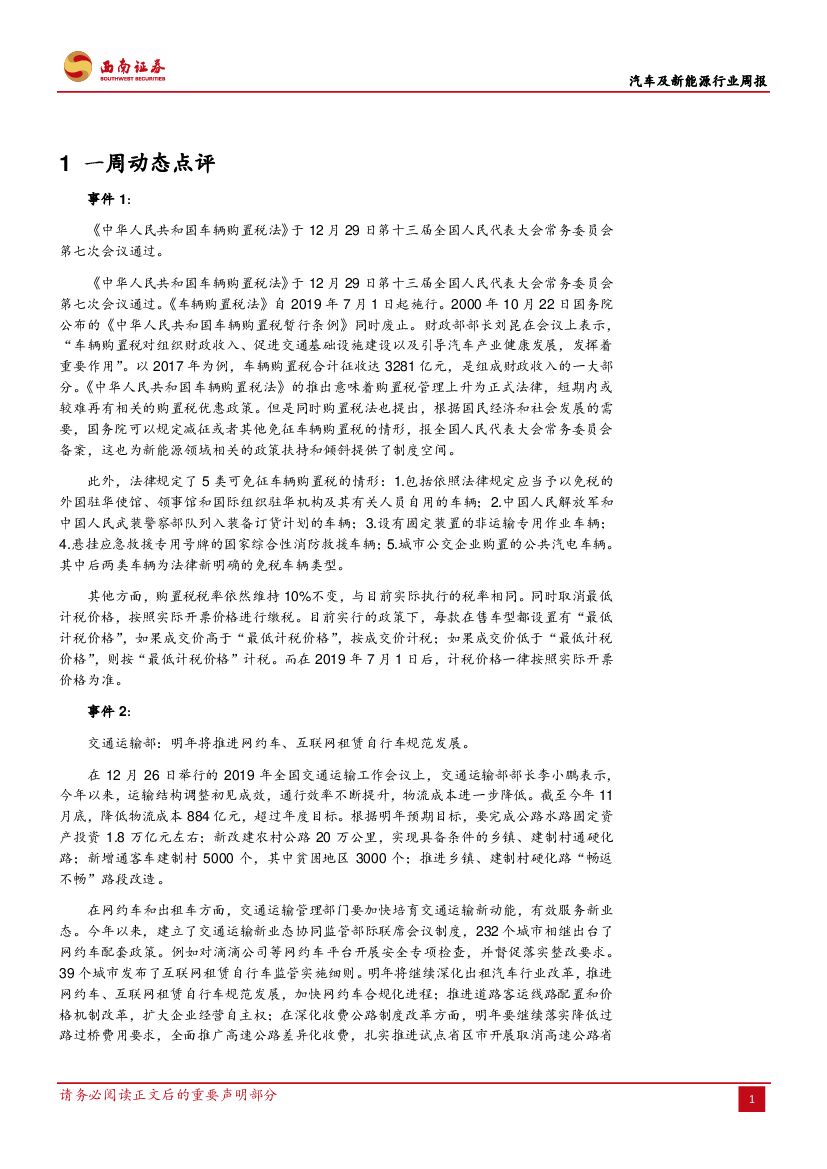 西南证券:汽车及新能源行业周报:车辆购置税法宣布,网约车新规利好纯电动车.pdf