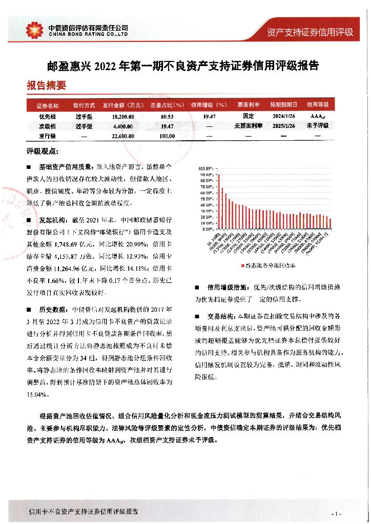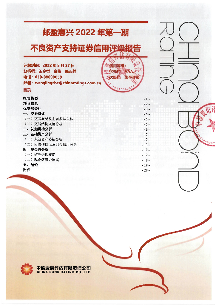 中债资信:邮盈惠兴2022年第一期不良资产支持证券信用评级报告.pdf