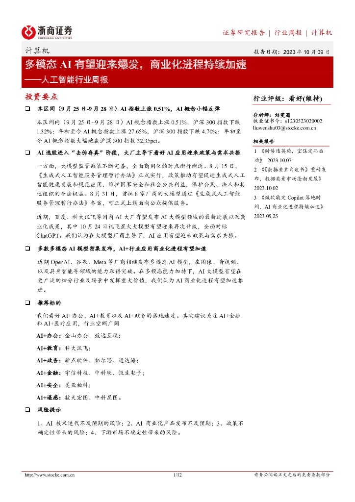 浙商证券:人工智能行业周报:多模态AI有望迎来爆发,商业化进程持续加速.pdf