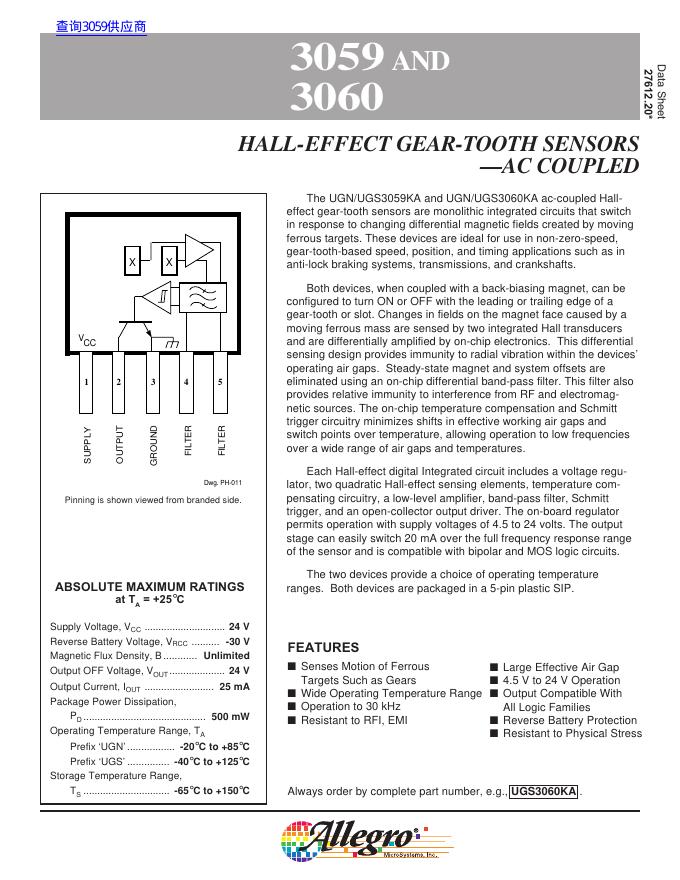 Allegro 3059/3060 HALL-EFFECT GEAR-TOOTH SENSORS 数据手册.pdf