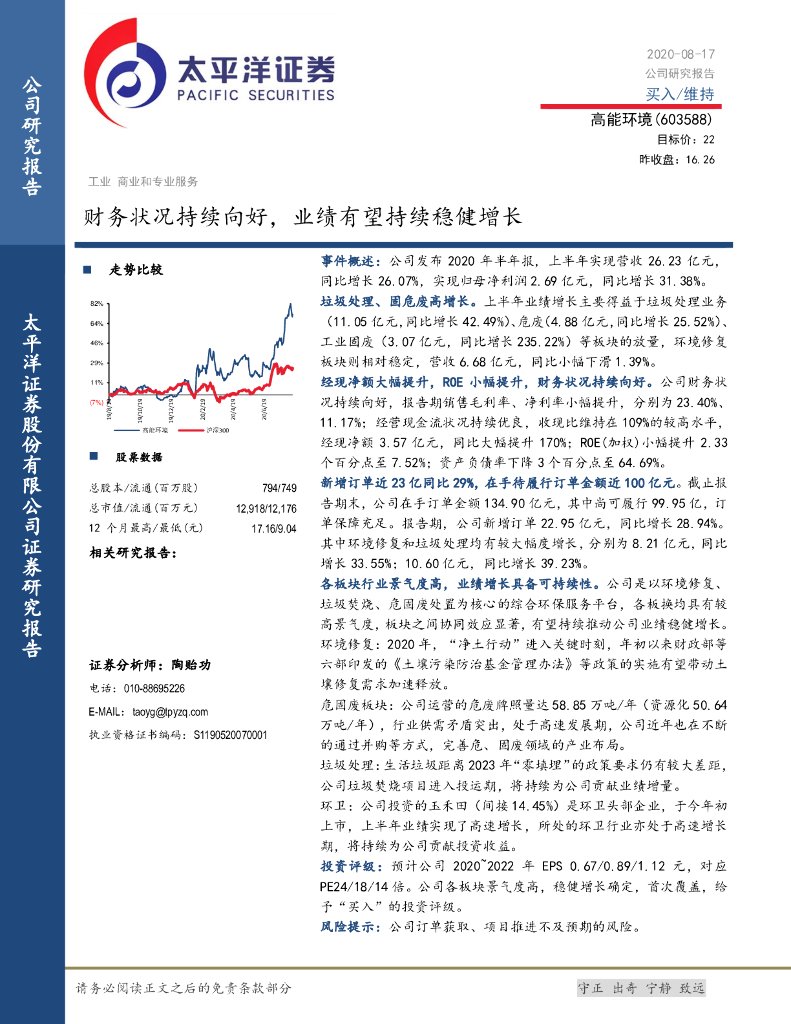 太平洋证券:高能环境(603588)-财务状况持续向好,业绩有望持续稳健增长.pdf