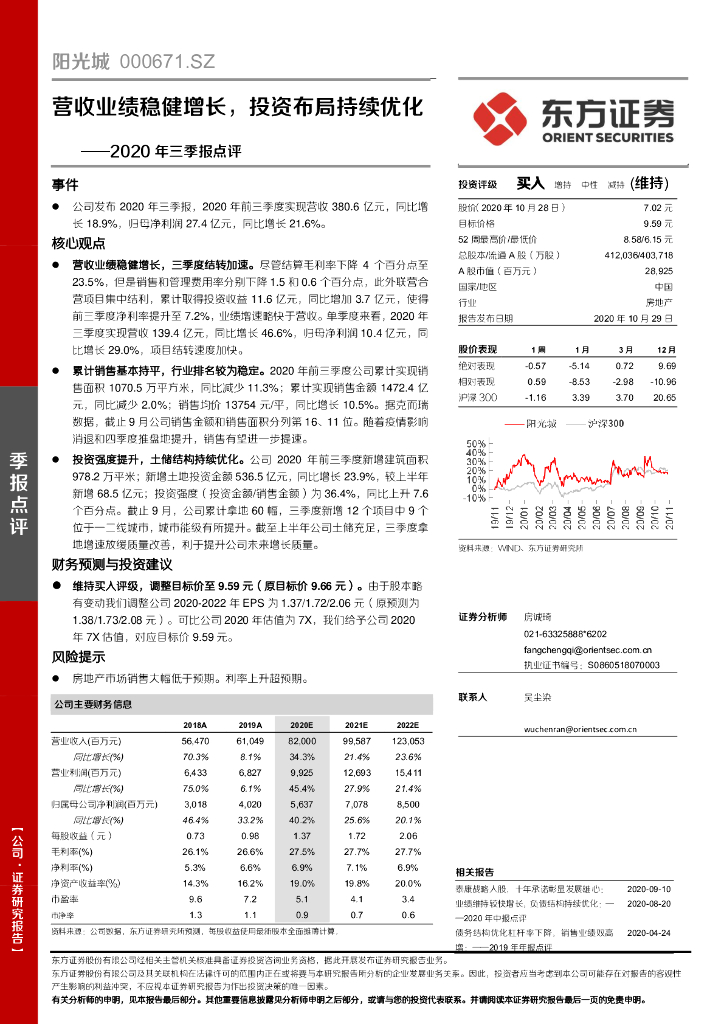 东方证券:阳光城(000671)-2020年三季报点评:营收业绩稳健增长,投资布局持续优化.pdf
