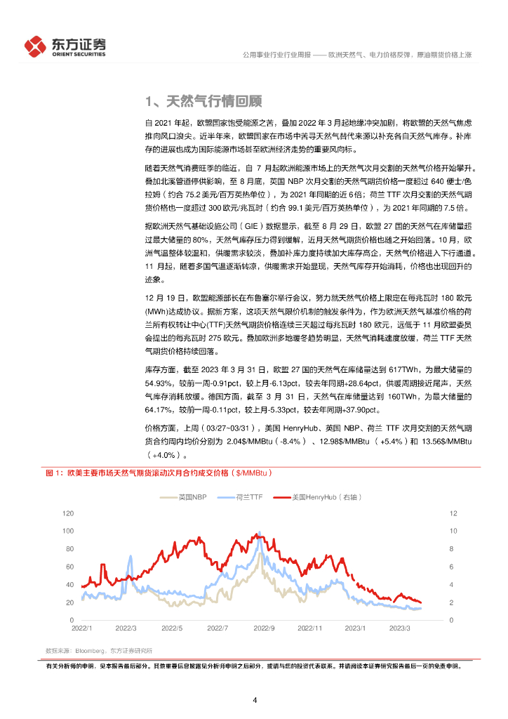 东方证券:公用事业行业欧美能源市场数据跟踪周报:欧洲天然气、电力价格反弹,原油期货价格上涨.pdf