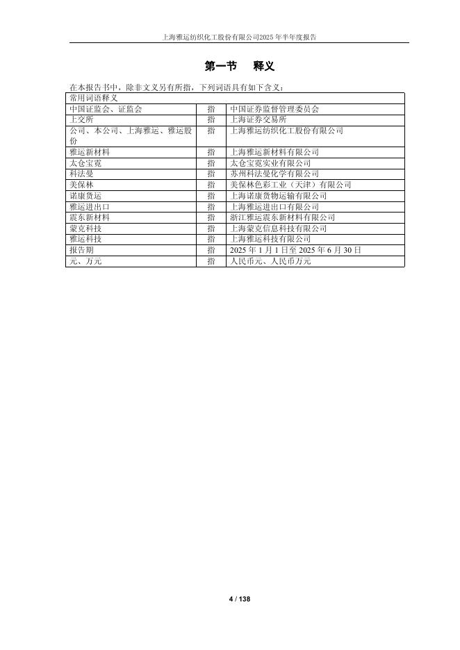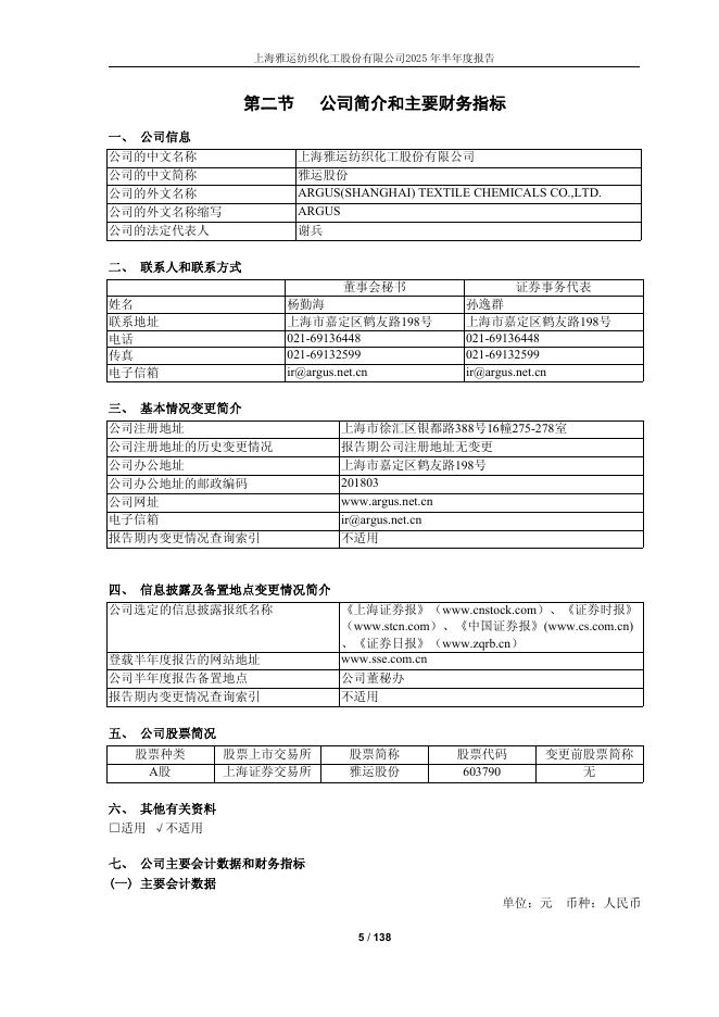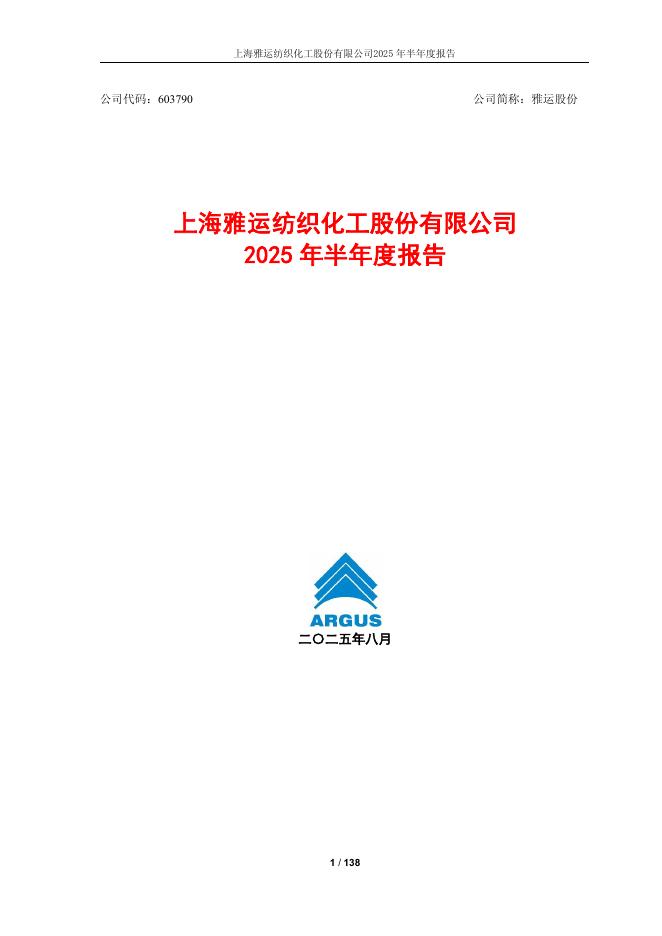 603790-雅运股份:上海雅运纺织化工股份有限公司2025年半年度报告.pdf