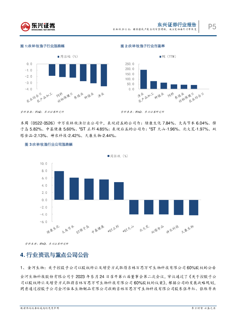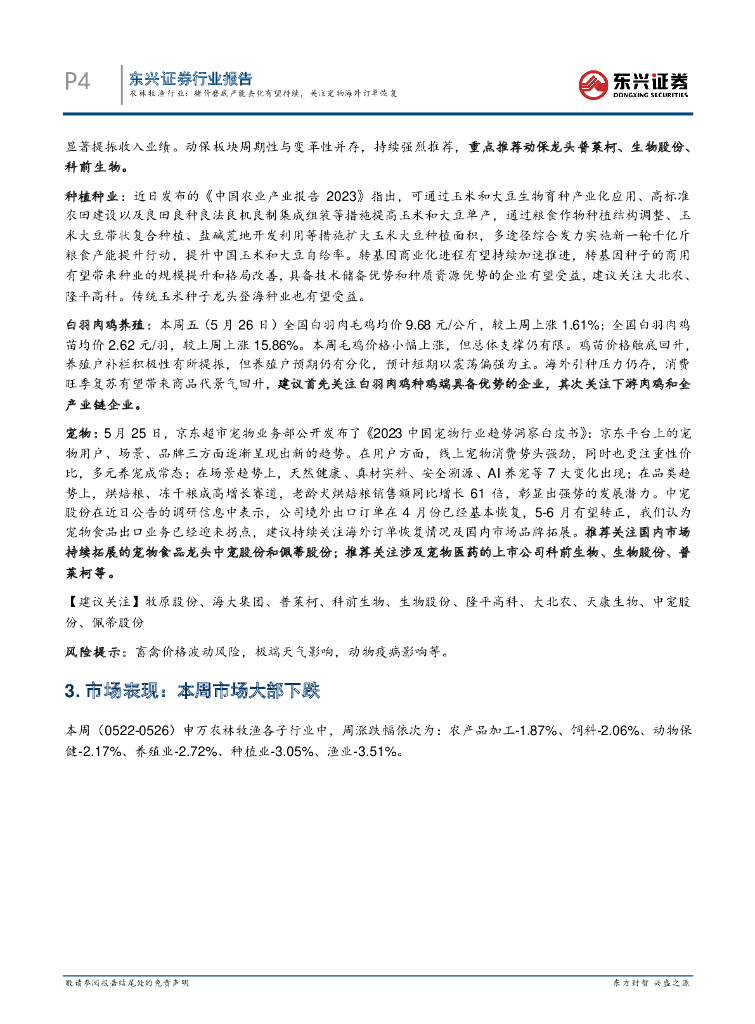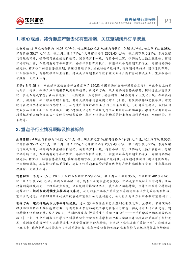 东兴证券:农林牧渔行业周观点(2023年第21周):农林牧渔行业:猪价磨底产能去化有望持续,关注宠物海外订单恢复.pdf